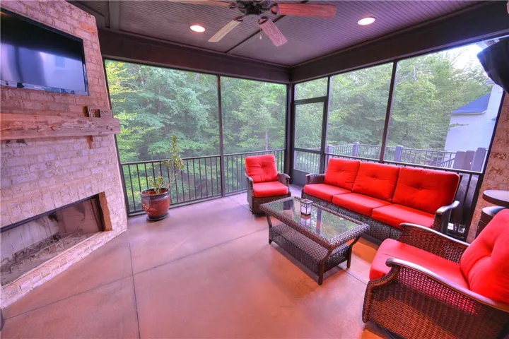 SO much potential! An additional 2800 square feet in the basement ready to be finished or just use for storage/studio/gym, etc! Custom built by Dilworth. Main level with primary bedroom suite on main level, as well as two additional bedrooms sharing a Jack-N-Jill bath. Formal Dining is connected to the kitchen by a lovely butler’s pantry. Kitchen features under cabinet lighting, gas cooktop, tiled backsplash, center island with storage underneath. Convenient powder room off the Kitchen. Kitchen opens to the Great Room, which features built-ins, stack stone gas log fireplace & French doors leading to the screened porch. Screened porch offers wood burning fireplace & leads to an open grilling deck. Upstairs includes 2 bedrooms each with en suite baths & en suite office/study areas! Large bonus room could serve at bedroom #6. Unfinished basement is stubbed for plumbing & has a safe room/poured concrete walls. Basement opens to a second covered patio overlooking the very private backyard! 10’ ceilings & 8’ doors. Spray foam insulation+tankless hot water heater. Structured shelving in closets. Welcome home!