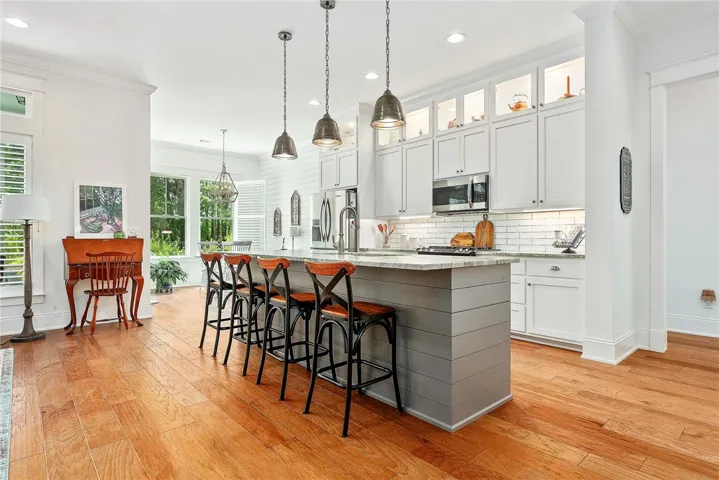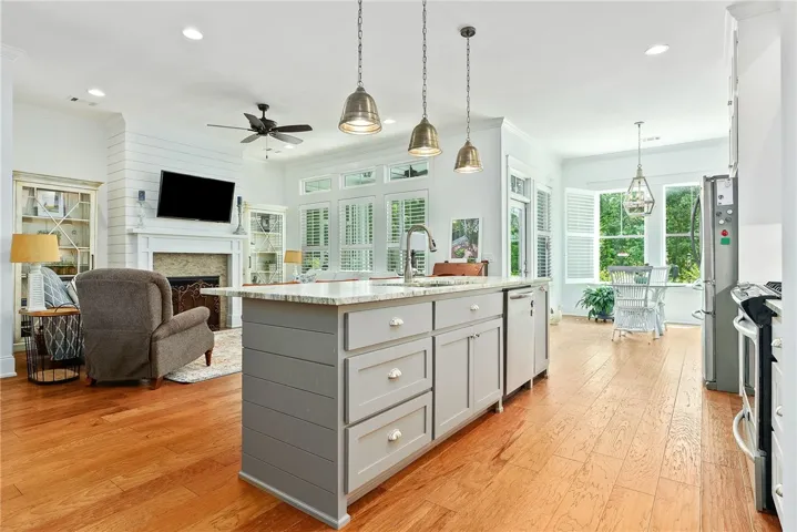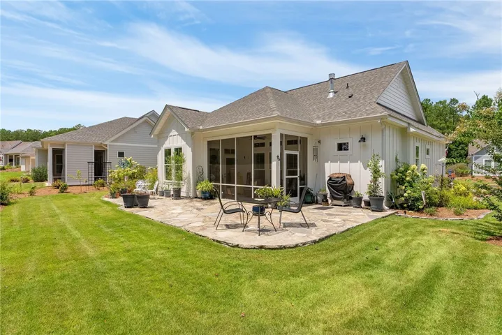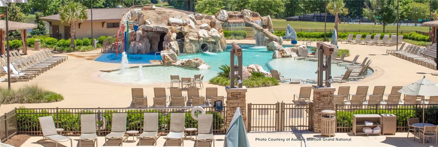 Come for the football game, stay for the world-class golf & spa! National Village offers the best in comfort & convenience as showcased in this move-in ready, immaculate one story, Craftsman-style home. Premium lot w 180° golf course view. No detail overlooked, beautifully appointed w plantation shutters, 12 ft. ceilings, deep crown molding in every room, hardwood floors in main living area. Kitchen features leathered granite counters, triple sink, gas cooktop, undermount lighting, walk in pantry. Living room has lots of natural light, stacked marble fireplace, flanked by designer etageres which remain. Screened in porch overlooks the XL blue stone patio & RTJ golf course! Cottage-style landscaping. HOA provides lawn care, use of Marriott Grand National’s resort style pools, dry sauna, exercise rm, clay tennis courts, pickleball courts, wooded nature trails, use of Saugahatchee Lake, complimentary play on short course & unlimited range balls at RTJ. Here, every day feel like vacation!