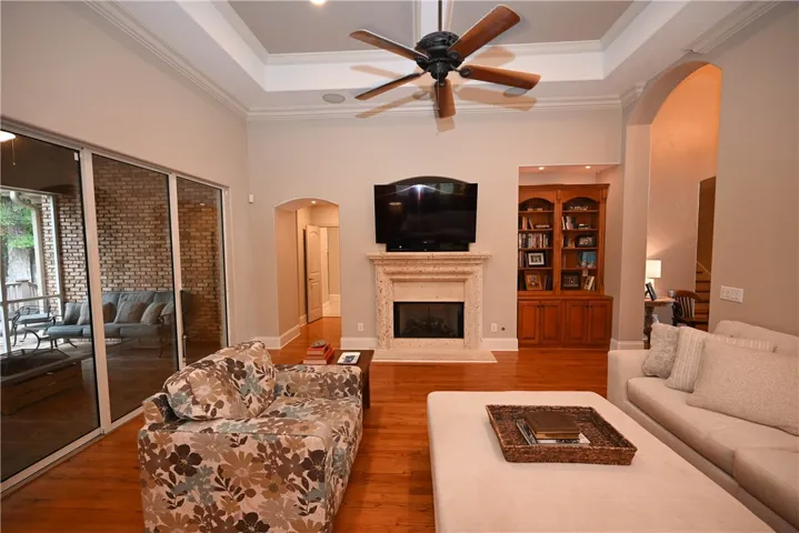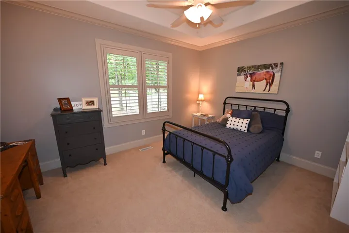 Elegant brick home in the wonderful Grove Hill! Neighborhood offers miles of sidewalks, TWO pools, clubhouse, playground. Amazing floorplan w/ soaring ceilings & tons of natural light! XL glass sliders from both great room & kitchen lead to screen porch, creating a seamless indoor/outdoor entertaining space. Chef’s kitchen w/ center island, tile backsplash, under-cabinet lighting. Spacious great room w/ built-ins, coffer ceiling, oversized gas fireplace, integrated surround sound. Huge & luxurious main level primary retreat w/ STUNNING en suite that connects to laundry! Beds 2-4 also on main level w/ 5th bed + full bath upstairs. Plantation shutters throughout. All baths updated! Screen porch + deck overlook the lovely fenced backyard. Easy access to Publix, gourmet restaurants/coffee shops! Convenient to Auburn Univ, downtown Auburn, I85, Chewacla, Ogletree Elementary, & the new Lake Wilmore rec center! Dishwasher & 1 of 2 water heaters replaced 2024; HVACs – 2020, 2022, 2024; roof – 2023