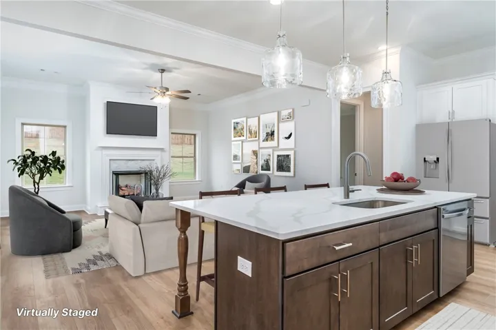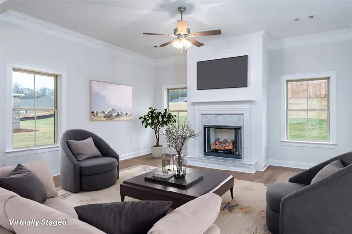 Please see the onsite agent for details (subject to terms and can change at any time) The “Cunningham” boasts two entrances, one through the garage to the mudroom and one through the large, covered porch to the foyer. The foyer leads directly into the all-in-one kitchen, great room and dining room. The open-concept is a dream for entertaining or spending quality time together. The primary retreat off of the kitchen features a luxurious primary bathroom and two extensive walk-in closets. With two vanities on either side of the primary bathroom, you will never be fighting for counter space or elbow room. The upstairs flaunts a unique design with a loft, two bedrooms and a sweeping bonus room/bedroom.