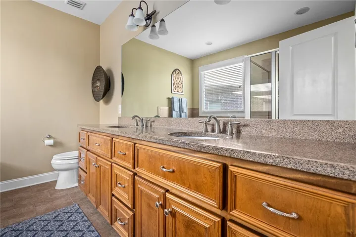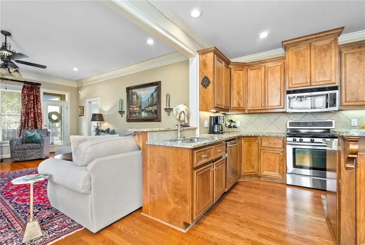 Calling ALL investors! This home is currently leased for $2,300 a month – lease expires 4/30/2027. Easy, low maintenance living in this spacious custom-built 3 Bedroom 2 Bath plan designed to maximize your living space all on one level. All exterior lawn maintenance included. New interior paint throughout and new carpet. Beautiful double glass entry doors take you into the foyer which leads to the open concept kitchen, breakfast area, and open living room. The kitchen features large granite island for added seating area, stainless steel appliances, convenient pantry, ample counter and cabinet space & GAS COOKTOP! Large primary suite with double granite vanities, jetted tub, tile shower, and spacious walk-in closet. Main level includes additional 2 guest bedrooms with additional bath and laundry room. The large living room features warm and inviting gas fireplace with easy access to the covered back deck. The deck features custom railing, spacious outdoor living area and gas hookup ideal for outdoor cooking. This home is well maintained and a great investment opportunity! **HOA fees cover lawn care and yearly shrub maintenance & pine straw**