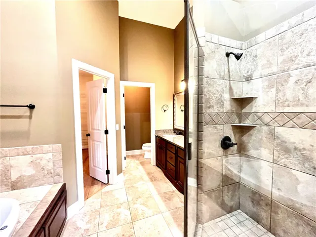 Back on the market! New roof and a new shower stall in master bathroom. Well-maintained, ranch house in the very desirable Camden ridge. All wood floor throughout the house except wet area. This house features a wonderful spilt floor plan with 4 bedrooms and 3 bathrooms, formal dining room, and breakfast area. Granite countertops and custom cabinets throughout kitchen and bathrooms. Kitchen opens up to a spacious great room with an appealing fireplace and a custom built-in tv nook. Master bathroom has his and her vanities, jetted tub, and separate tiled shower. Abundant closet space in all rooms. 2 rooms are covered back porch is perfect for entertaining guests or relaxing while gazing at the fantastic views of the playground and pools. Gutter and irrigation system throughout exterior.