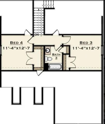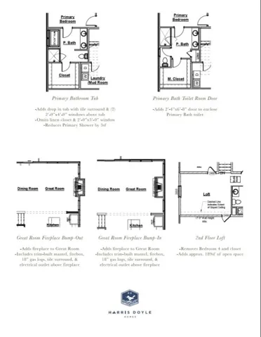 The Griffin floor plan by Harris Doyle Homes is a two story home with the primary bedroom and a secondary bedroom on the main floor. Upstairs you’ll find two bedrooms and a full bathroom.