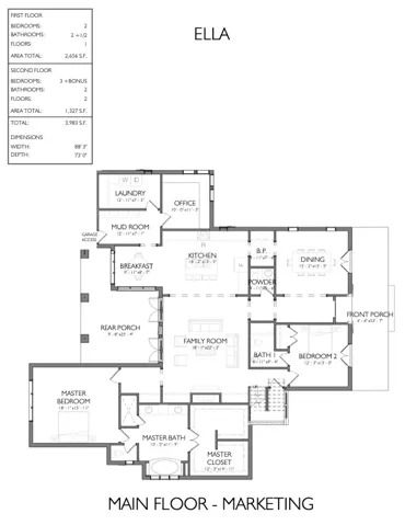 The Ella Plan is thoughtfully designed for both everyday living and elevated entertaining. The chef’s kitchen features a large breakfast bar, stainless steel appliances, walk-in pantry, cozy breakfast room, and a formal dining room with a butler’s pantry. The spacious family room flows seamlessly onto a covered veranda, creating the perfect indoor-outdoor living experience.