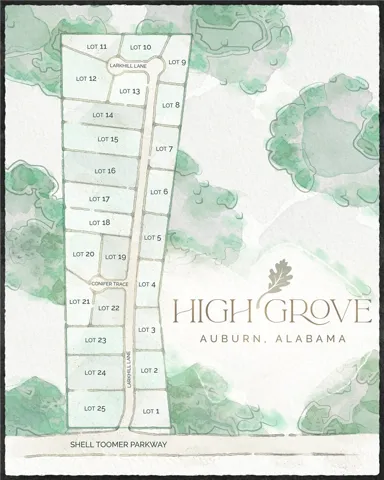 Introducing HIGH GROVE, Auburn’s newest luxury community presented by Dilworth Residential and Lowder New Homes! This is a rare opportunity to own one of only 25 private, wooded homesites, each offering 1+ acres of natural beauty and space.
