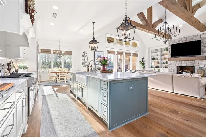 This 5 bed, 4.5-bath home, built by Michael Allen, is a show stopper! Located in a top notch neighborhood, this home offers spacious living areas, high-end finishes, and an abundance of natural light. The gourmet kitchen is a chef’s dream, top-of-the-line appliances including Subzero fridge stacked convection wall ovens, Thermador free standing 6-burner range. A wine refrigerator, custom cabinetry, and a large center island. The master suite is a private retreat, complete with en suite and a walk-in closet. Each additional bedroom is generously sized, with ample closet space and beautiful bathrooms. The open floor plan flows effortlessly, with a family room, formal dining area, and a bonus room. Outside, the meticulously landscaped yard offers a serene setting with a large patio, ideal for outdoor gatherings. The salt pool hosts a gas heated spa Outdoor kitchen includes gas grill, refrigerator and ice maker. Fireplaces are gas log but also have full chimneys for wood burning as well.