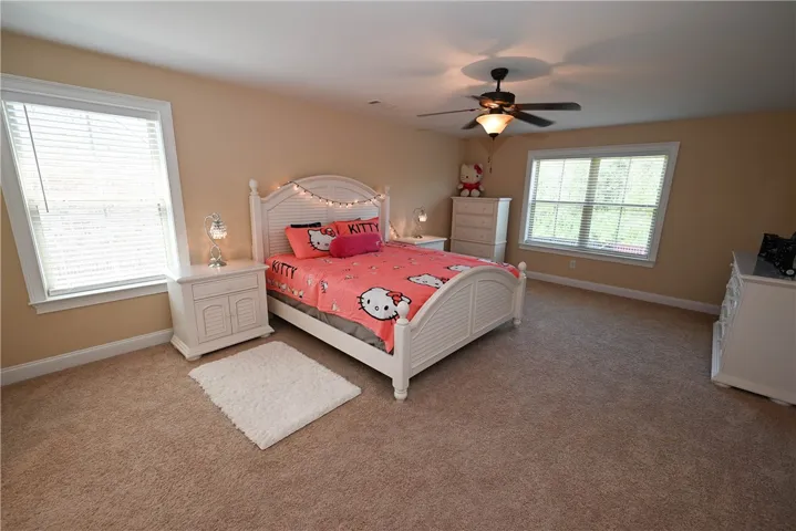 Do you need more room? Great space inside & out offering lots of options for the house & yard! Full brick/stone exterior for easy maintenance. Immaculately maintained. Open concept floorplan with kitchen open to living room & breakfast area. Kitchen boasts a large center island, under cabinet lighting, kitchen desk & walk in pantry. Large breakfast area with 4 windows overlooks the private, fenced back yard. Living includes hardwood floors, recessed lighting, gas fireplace. Convenient half bath tucked away in the hall. Generous sized primary bedroom features 4 windows & recessed lighting. Primary bath features a tiled shower, jetted tub, double sink vanity & HUGE walk in closet! Secondary primary suite on the second level complete with a tiled shower, soaking tub, private water closet, linen closet and extended vanity. Pristine additional bedrooms upstairs are like new. Massive back yard is flat & fully fenced! Energy (MONEY) saving features include spray foam insulation & tankless hot water heater. Not 1, but 2 pools!