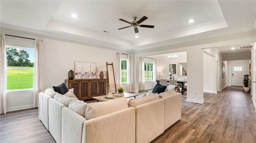 Welcome to 2200 Bluebird Dr, our Camden floorplan featured at our beautiful Preserve community. This one-story floor plan is great for multi-generational needs with a separate living, bathroom, and bedroom space sometimes referred to a mother-in-law suite. Beautiful LVP flooring throughout the house with bathrooms having beautiful white quartz countertops and shaker style cabinets. Entering the kitchen and living room area, you will notice plenty of natural sunlight illuminating the main area. The living room has tray ceilings that open the room, making your living space feel much more comfortable. The kitchen has stainless steel appliances and comes with beautiful cabinets. The large island has plenty of storage in it and every surface has elegant white quarts countertops. Includes a Home is Connected smart home technology package which allows you to control your home with your smart device while near or away. Pictures are representational only. The Camden is a must-see floor plan so schedule your tour today!!