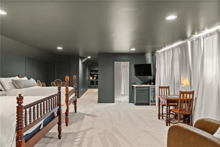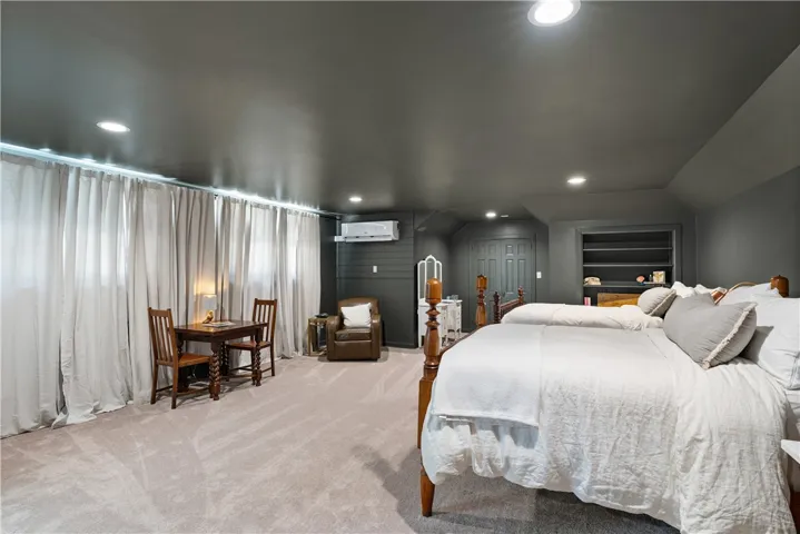 Two living rooms—one formal, one casual—offer spaces to both gather and retreat. Solid acacia floors enrich the formal living and dining rooms, while the baths on the main level blend 1960s charm with a dash of modern glam. Upstairs, a newly completed retreat captivates with deep, dramatic walls, multiple walk-in closets, double vanities, and even a built-in beverage center—ideal as a private haven for owners or guests.