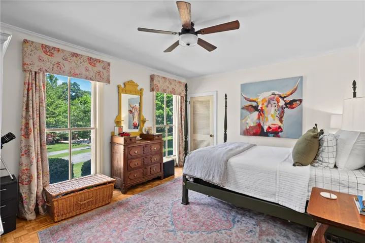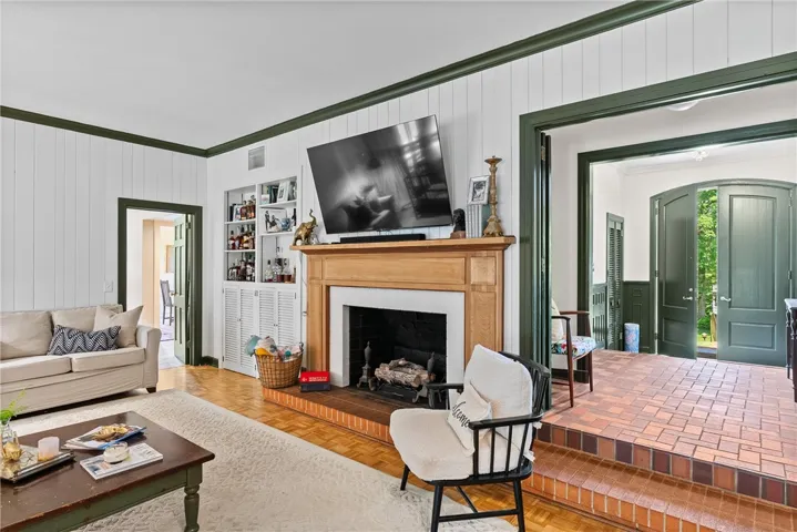Two living rooms—one formal, one casual—create space to gather, host, and retreat. Solid acacia floors elevate the formal living and dining rooms, while the main-level baths blend 1960s charm with a touch of modern glam. You’ll be amazed by the amount of built-in storage this home offers! Upstairs, a newly completed retreat captivates with deep, dramatic walls, multiple walk-in closets, double vanities, and a built-in beverage center—ideal as a private primary haven or elevated guest suite.