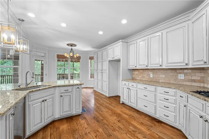 Stunning 3-story custom brick home in Auburn’s sought-after Moores Mill area with over 5,000 sq ft and golf course views. This spacious home features tall ceilings, a formal dining room, and a gourmet kitchen with a wraparound island and custom cabinetry. The kitchen and living room open to a cozy screened-in porch, also accessible from the main-level primary suite with sitting area. Bedroom 2 with private bath is also on the main floor. Upstairs offers 3 bedrooms, full bath, and a kids’ loft. Basement level includes an in-law suite with its own primary bedroom and full bath. Recent updates include: new architectural roof (Dec 2023), new microwave (May 2024), fresh paint and porch screens (May 2024), new water heater (2022), and extended driveway (2022). Incredible location with quick access to Moores Mill Club, dining, shopping, and top-rated schools. This is a rare opportunity to own a luxurious and well-maintained home in one of Auburn’s premier neighborhoods!