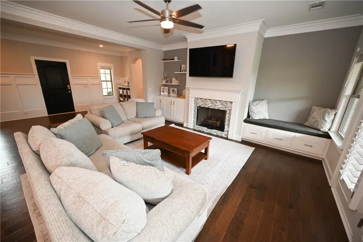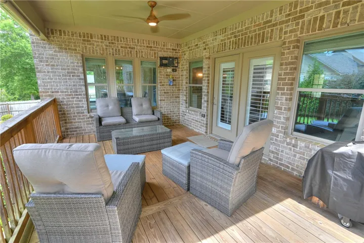 Meticulously maintained, this stunning home offers a perfect blend of efficiency, elegance, & livability! Four bedrooms on the main level! Incredible outdoor spaces include a covered back deck plus cement patio with integrated fire pit, both overlooking the private, fenced backyard complete with gorgeous mature landscaping. A thoughtful floorplan with amazing attention to detail throughout — from the welcoming foyer with judge’s paneling to the seamless open-concept living area. The great room features a cozy gas fireplace framed by built-ins & flows effortlessly into the chef’s kitchen, where marble countertops, a large center island with seating, SS appliances, gas cooktop, tile backsplash, & huge walk-in pantry await. The adjacent dining room shines with coffered ceiling & detailed millwork, ideal for formal entertaining. The main-level primary suite is a true retreat, showcasing tray ceiling, expansive windows, & a spa-like bathroom with exquisite tiled step-in shower, double sink vanity, relaxing soaking tub, water closet, & dual walk-in closets. Beds 2–4 are also on the main level, along with a full hall bath & shared Jack & Jill bath. Dedicated mudroom just off the courtyard entry double garage. Final bedroom & bathroom are located upstairs, along with an enormous bonus room & walk-in attic storage. Convenient location with easy access to Hwy 280, I-85, downtown Auburn, Auburn University, TigerTown, & Publix. Low-maintenance brick exterior. Gutters. Energy-star certified.