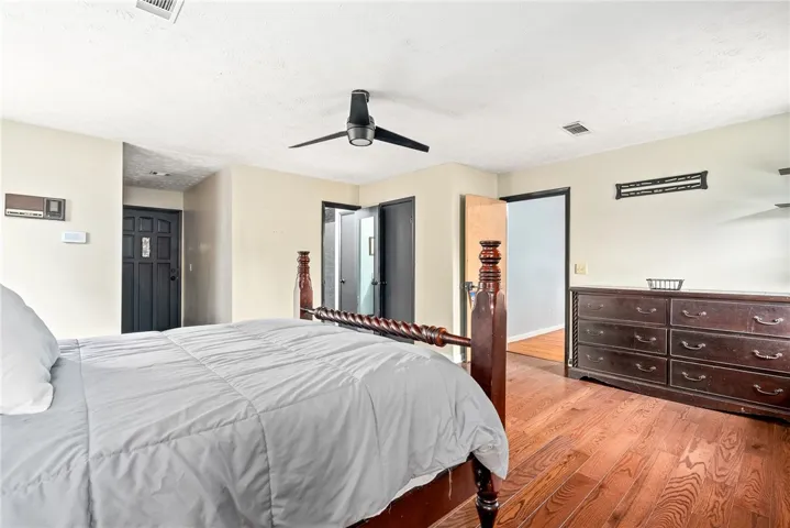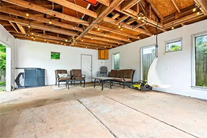 Prepare to be amazed by this exceptional home! The kitchen seamlessly flows into the living space, showcasing original hardwood floors. Updates include custom cabinetry, stainless steel appliances, a wine rack, and modern light fixtures. The one-car garage has been cleverly converted into an additional living area. The shared bathroom is one of the few major highlights! It boasts a large ceramic shower, granite countertops, and stylish lighting. A holding room precedes the expansive master suite, offering two closets and direct access to the back patio. The master bath features granite counters, dual vanity, and a serene ceramic shower. The detached garage, holds potential as the ultimate space—whether a man cave, she shed, workshop, or storage. The backyard and deck create a backdrop for entertaining. HVAC was updated in 2019. All furniture is negotiable.