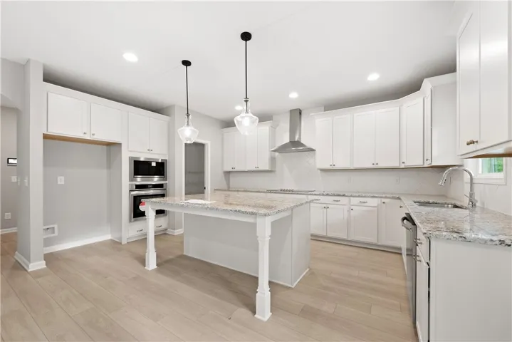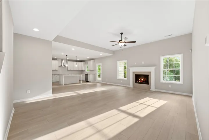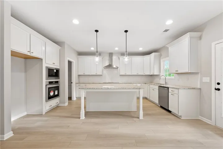 Discover luxury living at The Estates at Westgate II, a Hughston Homes Community. Absolutely Stunning Inside & Out, our Oakwood B Floorplan is nestled on 2.31 acres in Fort Mitchell, AL. offers 3029 sq. ft. of beautifully designed living space with 4 bedrooms and 3.5 baths. Step inside the bright two-story foyer, complete with a convenient coat closet, and continue into the formal dining room featuring elegant, coffered ceilings and exquisite detailing. The spacious great room invites relaxation with its cozy wood-burning fireplace, while the gourmet open-concept kitchen impresses with stylish cabinetry, granite countertops, tile herringbone backsplash, electric cooktop, microwave/oven wall combo, upgraded dishwasher, and stainless-steel vent hood. The large center island connects the kitchen to the breakfast area and great room, creating the perfect space for entertaining. The owner’s suite is conveniently located on the main level, showcasing tray ceilings, abundant natural light, and a luxurious bath with a garden tub, separate tile shower, and dual walk-in closets, each featuring its own window for natural light. From the mudroom entry off the garage or kitchen, you’ll find our signature drop zone with built-in cubbies, an ideal everyday catch-all, plus easy access to the laundry and guest half bath. Upstairs, enjoy a spacious media room, perfect for a second living area, home theater, or game room. The three additional bedrooms provide generous space and storage, with a Jack and Jill bath connecting bedrooms 2 and 3, and an additional full bath off the hallway. Throughout the home, you’ll find Luxury vinyl plank flooring in the main living areas, smart home technology, and a two-car side entry garage. Step outside to the signature Gameday Patio, featuring a wood-burning fireplace, ceiling fan, and attached speakers, ideal for cozy evenings or weekend gatherings. A charming wooden fence accents the front yard, blending charm and classic appeal.