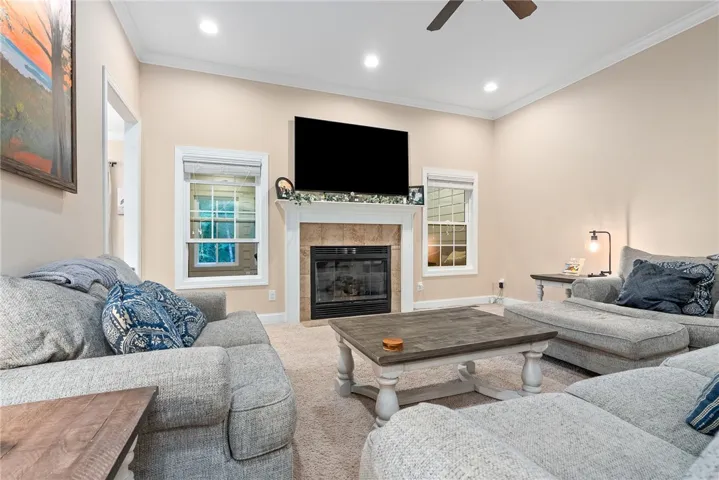 Step into this impeccably designed custom home located in StillWaters, a prestigious gated lakefront community. With soaring ceilings, elegant crown molding, and thoughtful architectural details throughout, this home offers both comfort and luxury. Enjoy Year-Round Comfort! Relax in the four-seasons sunroom, perfect for morning coffee or evening unwindingno matter the weather. There’s space for every hobby! A versatile exercise/craft/hobby room provides space to do what you love, while the extended 25-ft. garage easily stores your boat or lake toys. Retreat to a spacious primary suite! The oversized primary bedroom features a spa-like bathroom and a generous walk-in closetyour private sanctuary after a day on the lake.