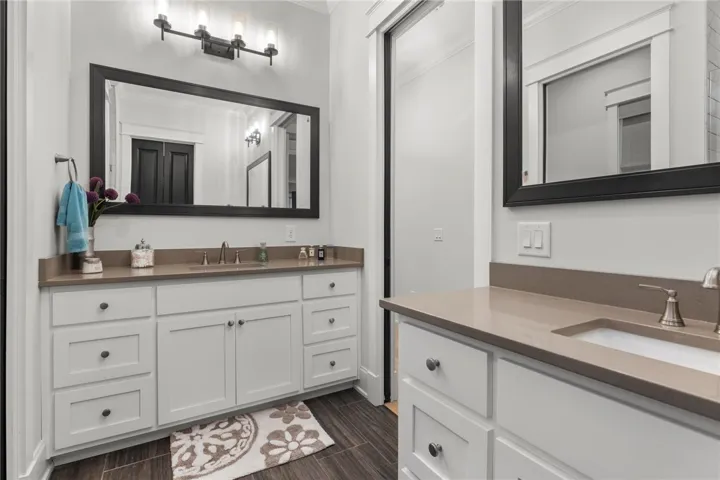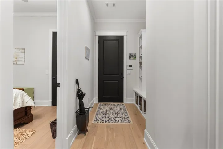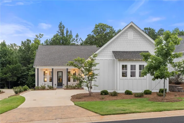 Beautiful craftsman style cottage with an open concept. Living area features a gas fireplace with marble surround and adjacent cabinetry. Quartz countertops & hardwood flooring throughout. Professionally designed and landscaped yard with bricked wall. Primary bath with zero entry shower, frameless shower door & built in niche. Kitchen features an expansive island – a chef’s dream with gas cooktop, built in MW & wall oven. 10 ft ceilings with 8 ft doors adds to the spacious home design. Home comes with an attached double garage with epoxy coated floors and extended covered rear porch including dual gas lines and a fantastic, private green space view. This is the desirable Crested Eagle plan with 1796 Sq Ft. Entry from garage showcases an ideally located drop zone. Home is wired for security and fiber optics for fast internet service. Easy upkeep with Hardie board & batten on exterior. This home has been meticulously maintained since closing late 2022. Call listing office for showing.