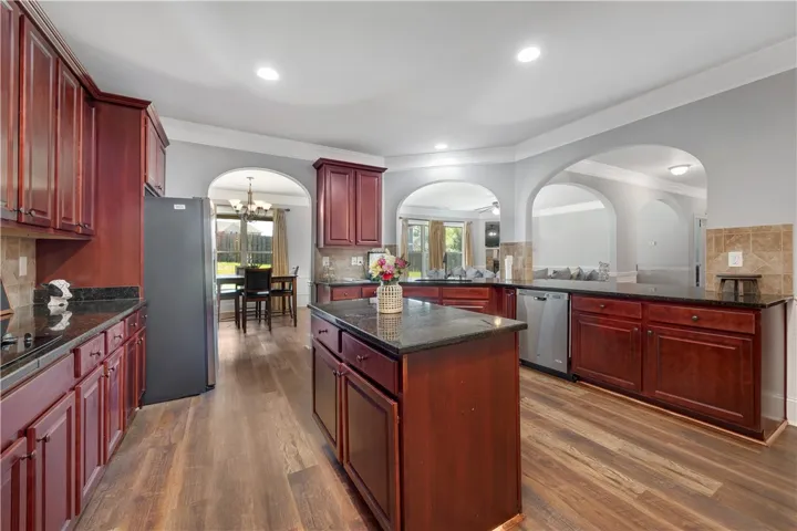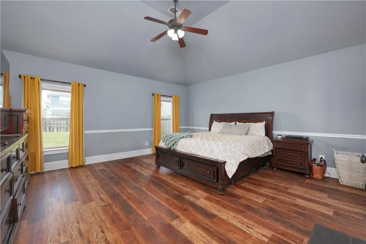 Welcome Home to Holland Creek! This beautifully updated 4BR/3.5BA home offers the perfect blend of charm, modern finishes, and flexible living space. Step inside to a bright, open layout featuring a welcoming living room with a wood-burning fireplace and a spacious dining area. The kitchen is designed for both cooking and gathering with granite countertops, stainless steel appliances, an island, pantry, and two serving bars. The main-floor primary suite provides comfort and convenience with a soaking tub, tiled shower, dual vanities, and a walk-in closet. Two additional bedrooms share a full bath, along with a separate half bath for guests. Upstairs, a large bonus room and a private guest suite with its own full bath and sitting area offer endless possibilities—ideal for extended guests, multigenerational living, or a dedicated workspace. Enjoy a fenced backyard with a covered patio, perfect for relaxing or entertaining. Updated finishes and new LVP flooring make this home truly move-in ready. Don’t miss out on this opportunity—schedule your private showing today!