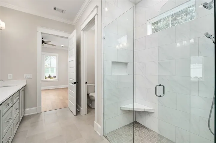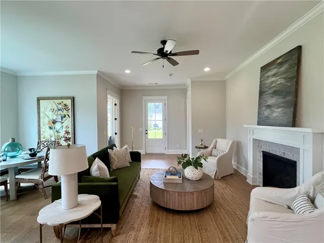 This is Cambrian Ridge cottage located in the quaint community of The Yards. It is a 2B/2B+Study with an open floorplan & 1,550 sq.ft. Kitchen features SS appliances including gas range & French door refrigerator with ample cabinetry and counterspace along with a view and access to side covered porch which can be screened. Primary bedroom has a beautiful view of courtyard! Primary bath has zero entry shower, corner shower bench & separate hand held showerhead. Quartz countertops, crown molding, 10 ft. ceilings with 8 ft. doors with Craftsman trim on all doors & windows throughout home! Living room has gas fireplace with Craftsman mantle. Home comes with an attached double garage and is within steps of the Marriott facilities. Amenities include access to the Marriott’s 2 outdoor pools plus 1 indoor pool, exercise room, 8 clay tennis courts and 4 pickleball courts! Come home to National Village today!!