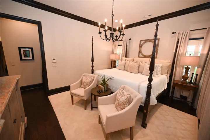 Exquisitely designed & impeccably maintained, this custom Dilworth home blends form & function w/ timeless details & thoughtful upgrades. A welcoming foyer opens into a stunning great room featuring soaring vaulted ceilings w/ massive timber beams & a central fireplace flanked by built-ins. The open-concept kitchen includes ceiling-height custom cabinetry w/ glass uppers, granite countertops, tiled backsplash, custom vent hood, 6-burner gas range, double convection ovens, large center island, & an amazing pantry w/ structured shelving. Between the great room & kitchen, a coffered-ceiling dining area includes a butler’s pantry w/ glass display cabinets, wine storage, & serving station w/ tiled backsplash. Nearby are a powder room & spacious laundry w/ cabinetry, sink, wood countertops, & space for a fridge as well as a mudroom w/ built-in bench, storage, & desk. A pocketed French door opens to a private office w/ built-in desk & bookshelves. Both the primary suite & a full guest suite are on the main level & boast hardwood floors! The luxurious primary features a spa-like bath w/ oversized shower, water closet, marble-topped double vanity, & incredible walk-in closet w/ integrated dressers, bench, outlets, & custom shelving. Upstairs offers 2 additional bedrooms & a loft seating area (both w/ new carpet), a hall bath, & endless floored attic storage. Backyard is a storybook English courtyard, w/ a stamped concrete covered porch + extended patio surrounded by lovely gardens & an 8′ poured concrete privacy wall! Additional features: plantation shutters, detailed millwork & mouldings, Cat 5 wiring, 4-zone audio (equipment stays), spray foam, Navian tankless water heater, gutters, irrigation, outdoor lighting, security system, & extensive storage. Garage w/ workshop, insulated doors, storage closet, & elevated ceiling w/ LED lighting. Convenient to Auburn Univ, downtown Auburn, Publix, Chewacla, & I85…. This one has it all!