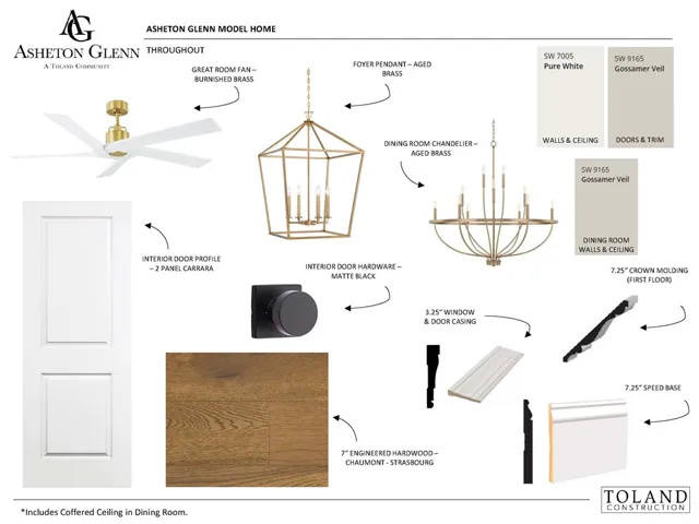 Ready NOW! This Club plan by Toland Construction has soaring 12′ ceilings, a beautiful kitchen for entertaining and a formal dining room to gather with friends and family. The custom built-ins in the master closet are a dream and the master bathroom has split vanities, private water closet, a zero entry shower with a bench, two shower heads and a soaking tub! This home has 1 guest bedroom and bathroom on the first floor and 2 guest bedrooms and bathroom on the 2nd floor with a flex room. Upgrades galore in this home! Hardwood floors throughout the entire house, spray foam insulation, coffered ceiling in the dining room, cast stone fireplace surround, gas cooking, and a tankless hot water heater! Upgrades galore! Must use builder contract.