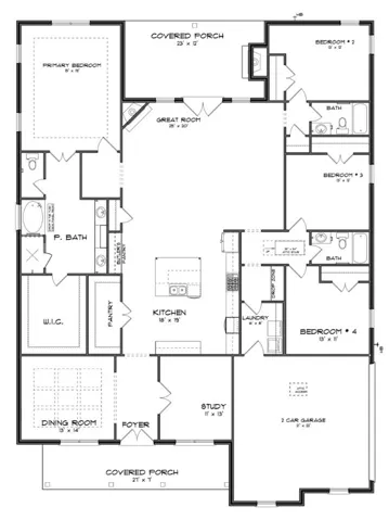 The Dogwood steals the spotlight with an elongated front porch that sets the tone for timeless charm. Inside, a study and formal dining room frame the foyer, leading into a spacious kitchen with abundant cabinet storage, a walk-in pantry, and a large eat-in island—perfect for gatherings and everyday living. The kitchen opens to a vaulted great room with a corner fireplace and a wall of windows overlooking the covered rear porch. A private retreat features tray ceilings, a soaking tub, a roomy shower, and a generously sized walk-in closet. Additional flexible living areas and a drop zone add everyday ease.