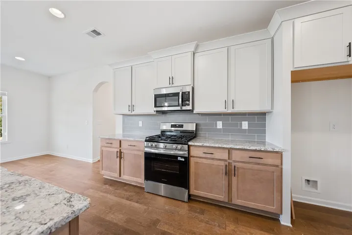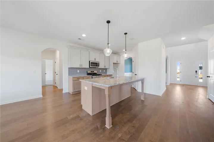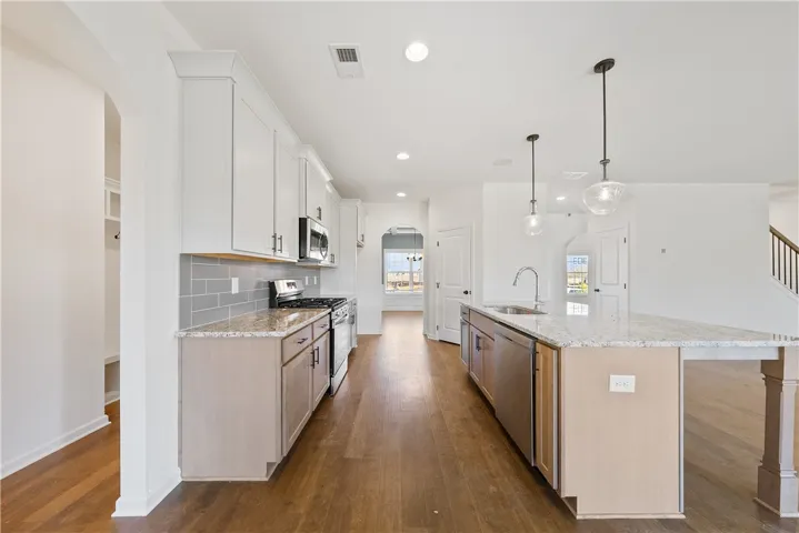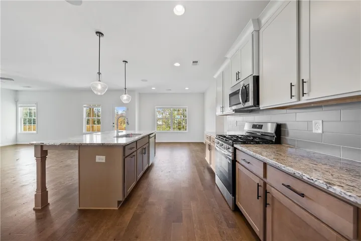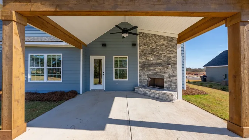Welcome to Wyndham Village, a charming Hughston Homes community in Opelika, Alabama! This spacious Jackson A plan offers 5 bedrooms, 4 full bathrooms, and 3,324 square feet of beautifully designed living space. Step inside to find an inviting foyer, a formal dining room with elegant detailing, and a versatile flex space ideal for a home office. The open-concept great room features a cozy gas fireplace and abundant natural light, seamlessly flowing into the gourmet kitchen—complete with stylish cabinetry, granite countertops, a tiled backsplash, stainless steel appliances including a gas range, stove/oven combo, and dishwasher. The large island is perfect for entertaining. A walk-in pantry and signature drop zone in the owner’s entry add convenience and storage. A guest suite with a full bath on the main level offers privacy and flexibility. Upstairs, the oversized owner’s suite boasts tray ceilings, a luxurious bath with a garden tub, tiled shower, and a large walk-in closet. A secondary bedroom with a walk-in closet and private full bath is ideal for a teen or in-law suite, in addition to two more generously sized bedrooms, a full hall bath, and a centrally located laundry room. Hardwood flooring extends through the main living areas, and an impressive list of included Hughston Homes features —blinds on the front of the home, irrigation system, home automation, and more. Step outside to enjoy the Gameday Patio with a wood-burning fireplace, perfect for fall football gatherings! Community amenities include a pool, playground, and pavilion, making this home a perfect blend of luxury and lifestyle.