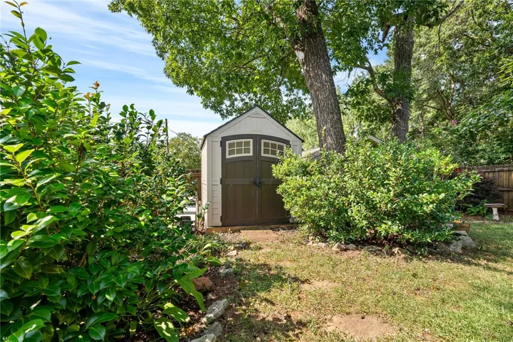 Step outside to your private backyard oasis, complete with mature landscaping including roses, gardenias, irises, camellias, and lush bushes. Whether you enjoy gardening or simply relaxing outdoors, this fenced retreat is perfect. A convenient storage shed provides extra space for tools or hobbies.