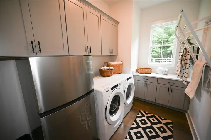 Off the kitchen, you’ll find 2 bedrooms, one a private suite with its own bath, the other (the perfect home office space) with a shared hall bath, as well as a well-appointed mudroom and laundry room.