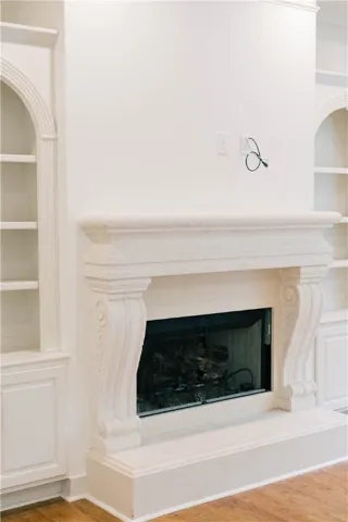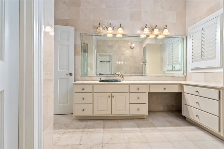 The spacious living room features a limestone fireplace and custom built-ins, while the kitchen overlooks the serene back garden and boasts a massive island, granite countertops, and a butler’s pantry complete with a built-in ice maker and wine fridge—perfect for entertaining.