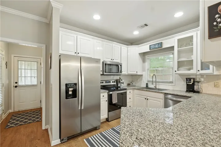 COMING SOON! NEW ROOF JUNE 2025! Unbeatable Grove Hill location with multiple updates under $450K! This precious single story 3-bedroom, 2 bath home sits at the end of a quiet cul de sac and offers the perfect blend of charm, functionality, and thoughtful upgrades—ideal for gameday getaways, first time buyers, or anyone seeking a low maintenance home in one of Auburn’s most desirable neighborhood. A welcoming front porch with wood columns greets you, and the all brick exterior was freshly painted white in 2022. Inside, a fantastic open floor plan connects the kitchen, breakfast nook, and living room, creating the perfect space for entertaining or everyday living. The kitchen shines with stainless steel appliances, white cabinetry, subway tile backsplash, granite countertops, and bar seating, while the breakfast nook features a striking new gold chandelier. The living area centers around a cozy wood burning fireplace for those crisp fall nights. Both secondary bedrooms are well appointed and share a conveniently located hall bath with updated lighting and hardware. The primary suite offers abundant space for large furniture and underwent a complete ensuite remodel in 2020, including new flooring, vanity, mirrors, lighting, a large soaking tub, and a fully tiled shower. The outdoor spaces are just as impressive—over $25,000 in professional landscaping and fencing done in March 2025, including a turf play area perfect for children or pets. The private back courtyard is the owner’s favorite spot, perfect for watching football under string lights on autumn evenings. The fully fenced yard with a 6 ft wood privacy fence provides peace of mind. With a new roof, prime location, and updates throughout, this home delivers rare value for under $450K in sought after South Auburn. Schedule your showing before it’s gone!