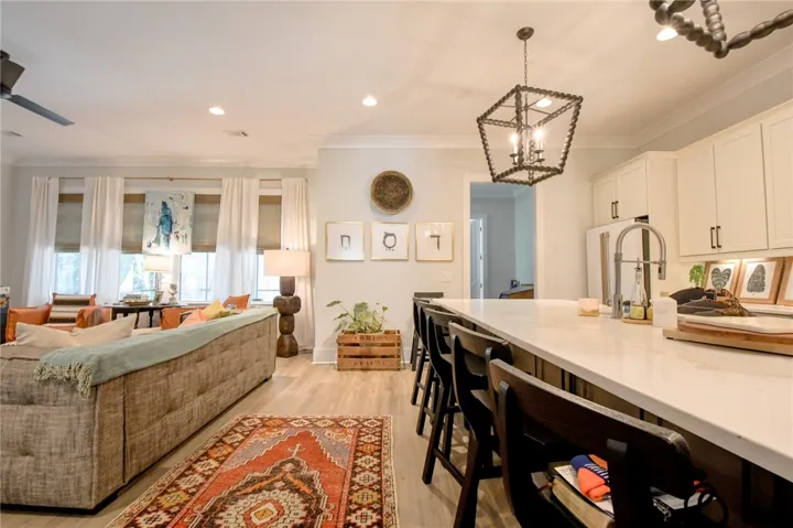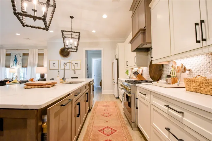 Live minutes from dining, coffee & game day energy in this 2022 custom-built home offering 5BR/3.5BA + all the perks of new const. 10’ ceilings & 8’ doors on main, formal DR w/china cabinet nook, flex rm for office/reading/exercise, shiplap accents & cove molding.