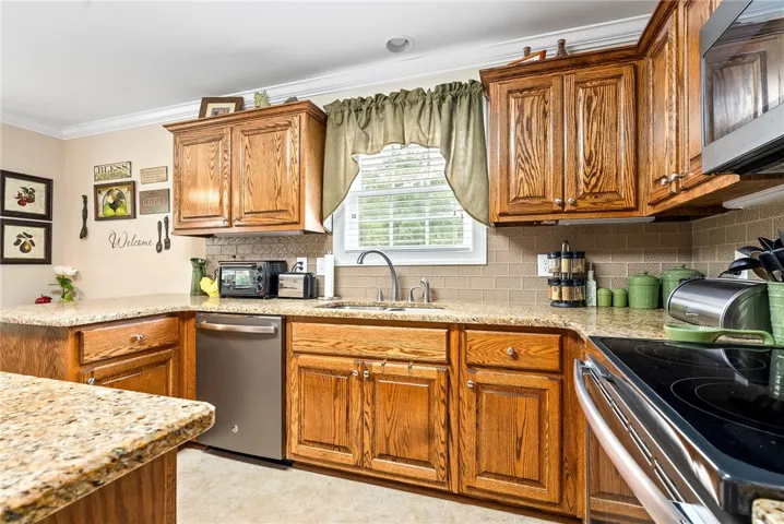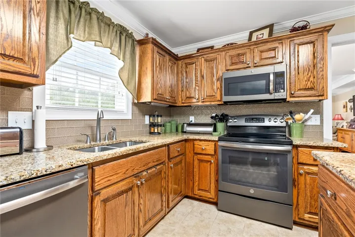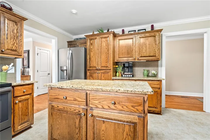Enjoy mornings on the inviting front porch, perfect for rocking chairs and coffee chats. Inside, the kitchen offers ample counter space and a cozy breakfast nook, while the formal dining room flows seamlessly into the living room—ideal for gatherings and everyday living. Step out back to a peaceful deck overlooking the backyard.