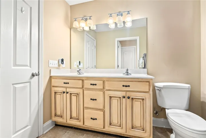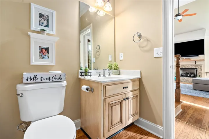 Step inside to find a spacious living room with soaring ceilings that fill the space with natural light. The large kitchen comes equipped with updated appliances (2021) and flows easily into the dining area—perfect for gatherings. The main level primary suite offers a relaxing retreat with an oversized closet and ensuite bathroom. Upstairs, the new HVAC system (2022) ensures year-round comfort for the 3 additional bedrooms.