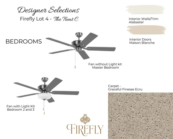 MOVE IN READY Designer Home! – Introducing FIREFLY’s Trent C Plan on Estate Lot 4. The Trent C is a three bedroom, two and a half bathroom home that spans across 1,684 square feet and features a two car garage. As you enter into the home, you enter into the foyer that has access to the garage and powder bathroom. The foyer flows into the open concept kitchen, dining and living area. The kitchen features a large center island and walk-in pantry. The main level of the home has large windows that allow for natural light to brighten the space. As you make your way upstairs, you’re greeted by the primary suite that features an en-suite bathroom with double vanity sinks, a walk-in tile shower, and a large walk-in closet. The second and third bedrooms share a hall bathroom. The laundry room is centrally located between all of the bedrooms.
