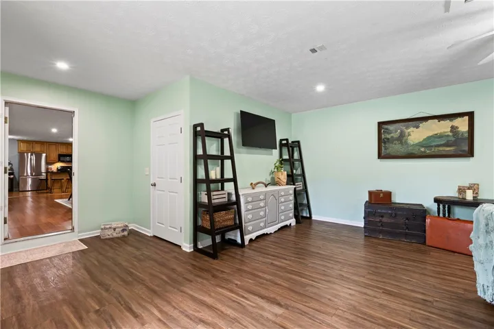 Every bedroom is spacious with a walk-in closet; the owner’s suite even has two—one of which has served as a home office in years past. A recent conversion of the 500+ sq ft garage adds a conditioned flex space, easily repurposed for hobbies, teen/MIL suite, second den, homeschool or media room (seller is agreeable to convert back to dbl garage if preferred). Also loads of attic storage!!