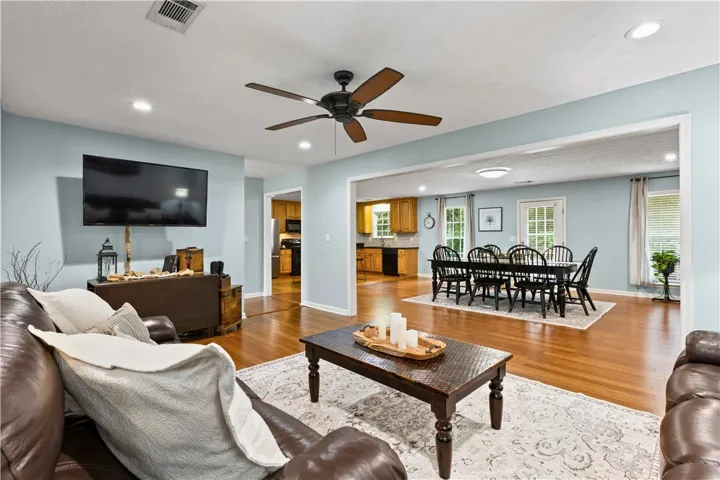 Step inside from the covered front porch to a thoughtfully re-designed open layout that makes a beautiful first impression and offers the perfect gathering space. A bright front keeping room provides flexibility—reading nook, music room, or sunny retreat. Connected yet distinct, the oversized living room flows into a generous dining space, ideal for entertaining or everyday family meals.