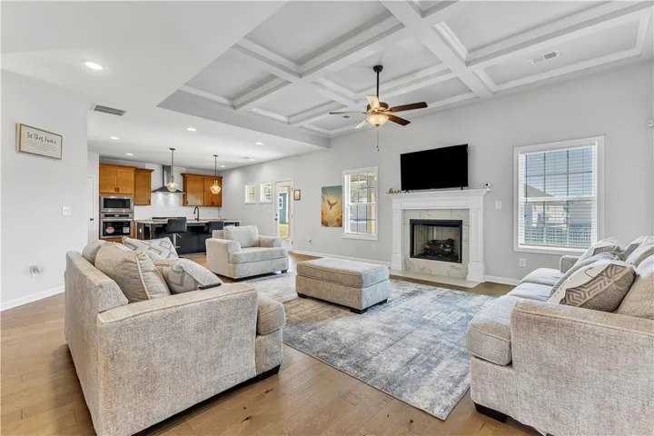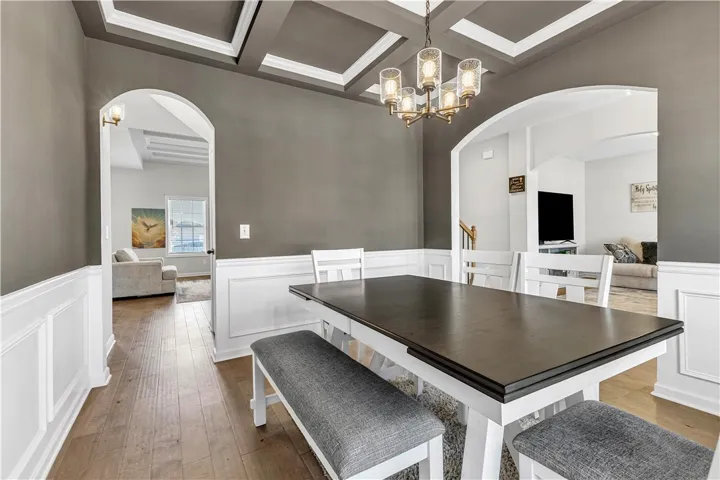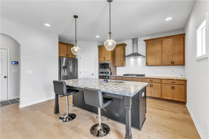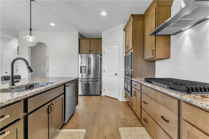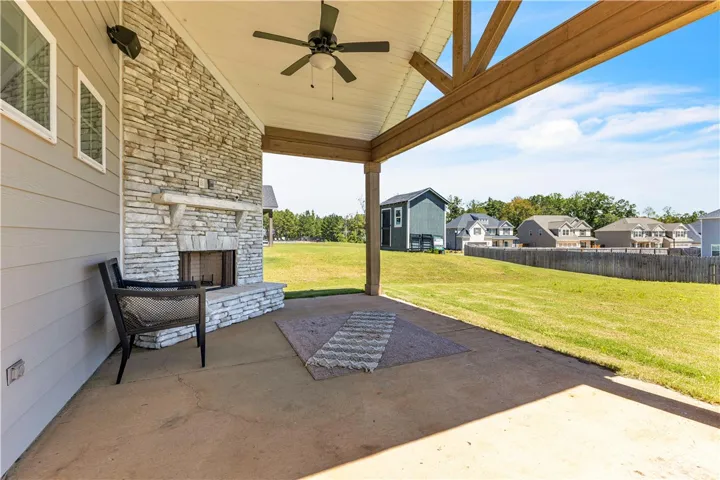 All the Upgrades You’ve Been Searching For! This highly sought-after floor plan offers 3,158 sq. ft. of stylish living space. Features include a formal dining room, flex room/home office, and a spacious great room with a gas fireplace. The gourmet kitchen boasts granite countertops, tiled backsplash, a kitchen island, a walk-in pantry, and stainless steel appliances with a gas range. A main-level guest suite with a full bath and an owner’s entry drop zone adds convenience. Upstairs, you’ll find a media room, a luxurious owner’s suite with a sitting area and spa bath, additional spacious bedrooms, and a centrally located laundry. Enjoy hardwood floors, premium finishes, and the signature Gameday Patio with a fireplace that is perfect for entertaining year-round. This home is ideal for those who value convenience, entertainment, and luxurious touches throughout.