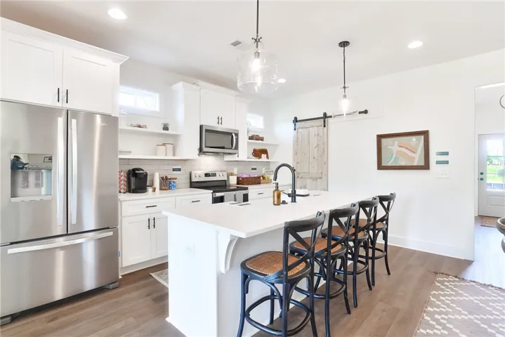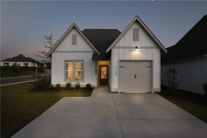 Designer Toby A, on Lot 66. Move-in February 2026! The Toby A is a beautiful 3 bedroom, 2 bathroom, 1391 square foot home with a front entry single car garage. The entry way opens up into a foyer that leads on one side to the two guest bedrooms with a shared full bathroom, and on the other side into the open concept kitchen, living, and dining areas. The kitchen features a large island with plenty of cabinet space. Just off of the kitchen is the laundry room, which leads into the front entry garage. The kitchen flows into the living area that features floor to ceiling windows and access to the covered back porch. The primary suite sits at the back of the home and features a private en-suite with a large walk in closet and private walk-in shower with a double vanity.