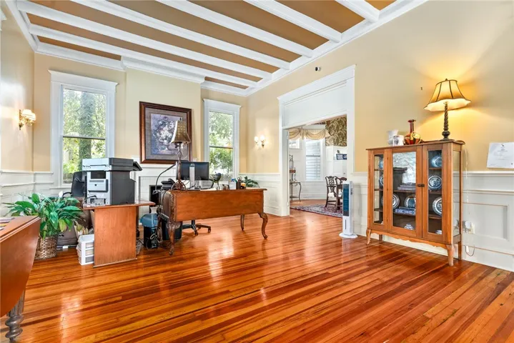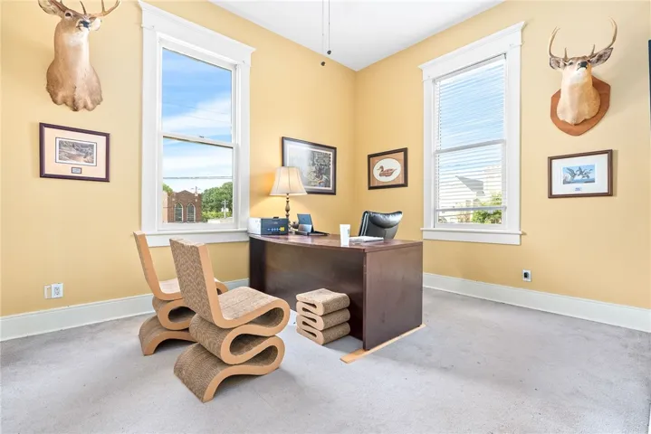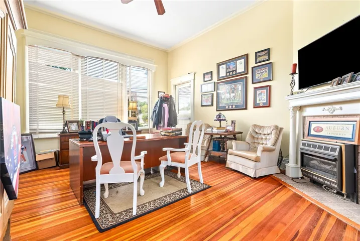 Victorian Office building located within the Downtown Historic District of Opelika. Main floor consist of a large receptionist/lobby entrance with conference room, private office kitchen and clerical area with 2 restrooms. Upstairs has 4 private offices and 2 restrooms. Excellent location with high visibility and traffic count.