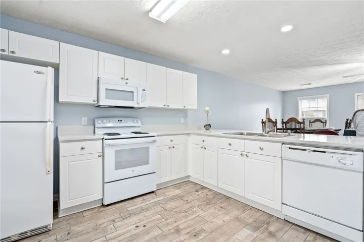 Fresh paint, brand-new carpet, and move-in ready! This updated condo in Donahue Crossing is ready for its next owner. The main level features wood-look tile flooring and tiled wet areas for durability and easy maintenance. The kitchen has been thoughtfully renovated with updated countertops, recessed lighting, and modern appliances, giving it a clean, contemporary feel.