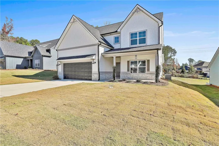 MANTLE B by Freedom Builder Homes. Primary Suite on main. Guest bedroom with private bath on main. Open floor plan with large kitchen island and breakfast area open to two story family room – all with hardwood floors. Upstairs are two bedrooms with walk in closets and a Jack and Jill bath. Covered porches & exterior fireplace on back porch. This home is a MUST see!