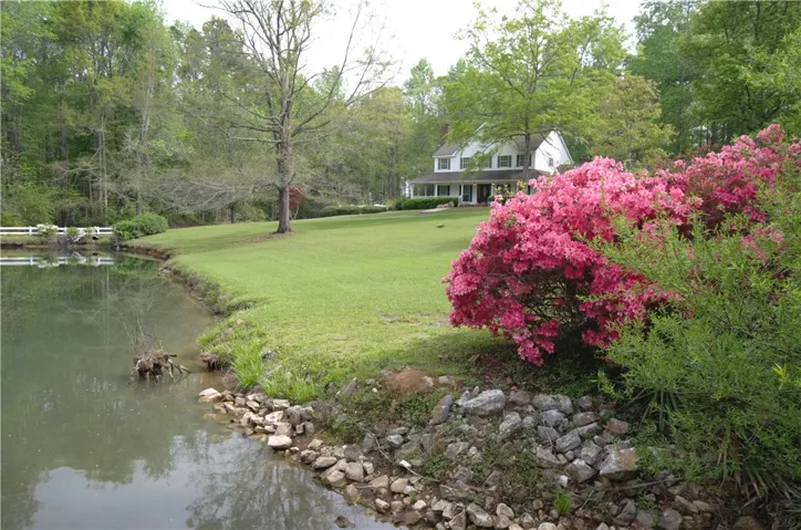 Most people can only dream about a palatial place like this on 5 acres with all the southern charm one can imagine. Just driving in on the circular driveway rounding a beautiful pond and a landscape that is to die for. As you look closer at this property you see a Southern style home with with wrap around porches that face the pond and covered back porches that overlook the private back yard. This home has a 3 bay carport as well as a two car garage. Upon closer inspection one notices a gorgeous salt water pool with separate pool house with full bath and sauna; a pole barn with 3 bays to accommodate a camper/ATV, and an additional workshop with garage door and spacious fenced area for dogs. Moving into the main level on finds a guest bedroom and bath; living room; formal dining room; keeping room and bonus room. The master bedroom is huge with recessed lighting, extra windows, sitting area, walk in closet, private bath, step in shower, jetted tub, double sink vanity & toilet closet. There are additional bedrooms on the second level all with vaulted ceilings providing great light. Stepping into the kitchen one will be awed: sit down bar, roomy pantry , serving bar, window over the sink, breakfast nook, keeping room and all stainless appliances. Laundry room plumbed for a sink and has a laundry chute from the second floor. This home is blessed with tons of storage. Two new HVAC units, new water heater, roof replaced in 2010. This place is to die for; take a look. FOR A REASONABLE OFFER THE SELLER IS PREPARED TO OFFER BUYER A $10,000