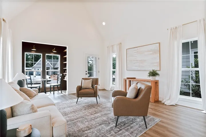 Designer Duette 3E on Lot 105! Close FRIDAY, October 24th, 2025! The Duette 3E is a two bedroom, two bathroom, 1203 square foot home. As you enter into the home, you enter into the living room that features large windows, vaulted ceilings and a reading nook. The living room leads to the open concept dining room and kitchen that features custom cabinets and a large center island. As you make your way to the back of the home, you will find the guest bedroom and guest bathroom and laundry room. The owners retreat rests on the back of the home and features an en suite bathroom and large walk-in closet as well as access to the back porch and outdoor storage closet. Phase 1 amenities include a dog run & fire pit area. Pool, pavilion, and pickle-ball court amenities to be added in future phases.