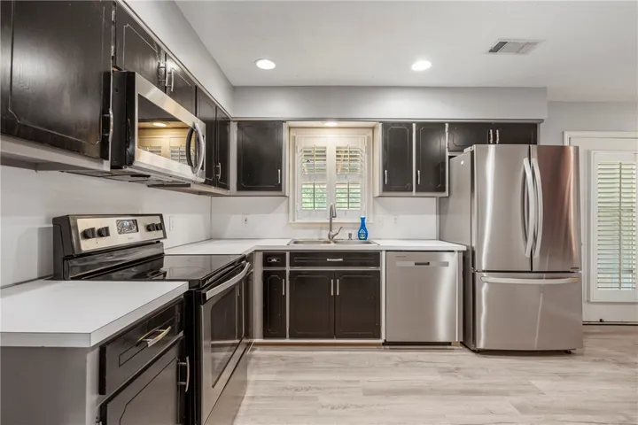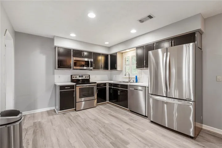 Welcome to this beautifully maintained 3-bedroom, 2-bathroom home featuring a desirable split floor plan and thoughtful finishes throughout. Located in a quiet neighborhood, this home offers comfort, functionality, and style. Step inside to find luxury vinyl plank flooring in the main living areas, plush carpet in the bedrooms, and tile flooring in the bathrooms—designed for both aesthetics and easy maintenance. The spacious kitchen is equipped with stainless steel appliances and opens to a cozy dining and living area, perfect for entertaining or everyday living. Enjoy privacy and relaxation in the fenced-in backyard complete with a covered back patio—ideal for grilling or unwinding in the evenings. The single-car garage adds convenience and additional storage space. Whether you’re a first-time buyer, downsizing, or simply looking for a move-in ready home, this property checks all the boxes!