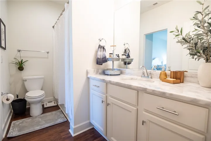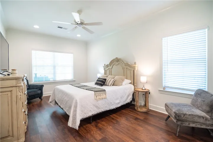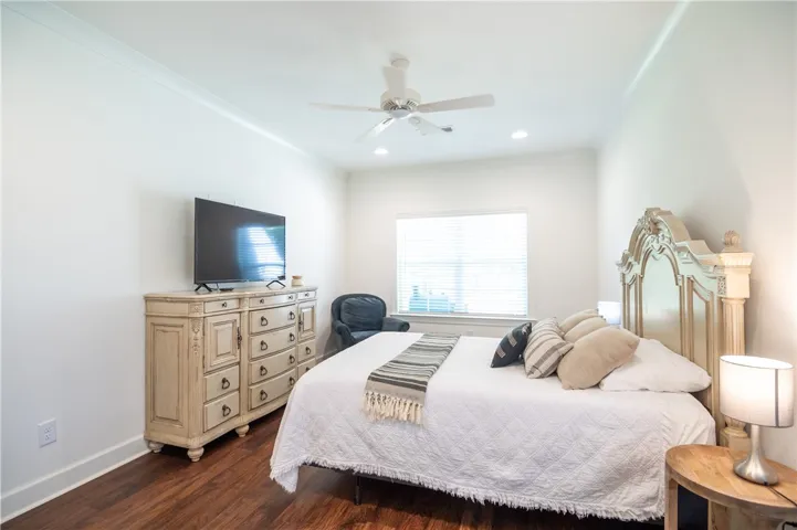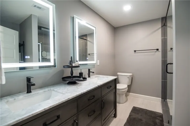The owner’s suite feels like a true retreat with an enlarged super shower, bench seating, a frameless glass door, and a spacious walk-in closet. Guests will appreciate the private en suite access to the second bedroom and bathroom, which is a major perk for both short-term tenants and long-term visitors.