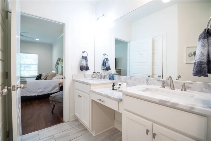 The spacious owner’s suite features an enlarged super shower with bench seating, frameless glass door, and a generous walk-in closet with room for luggage or seasonal storage. Guests will appreciate the private en suite access to the second bedroom and bathroom. Upstairs, this home stands out as one of the few in the community with a fully finished second floor—complete with a second primary suite.