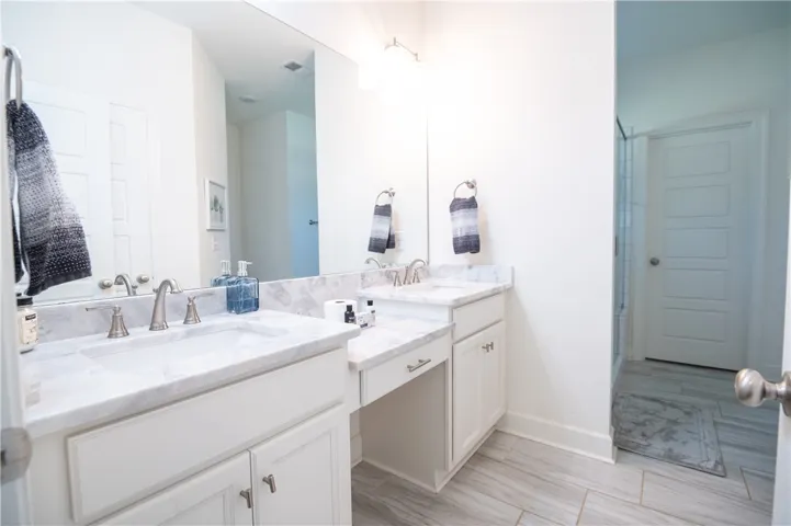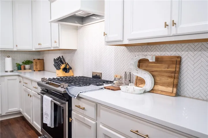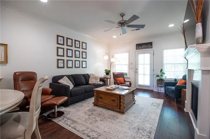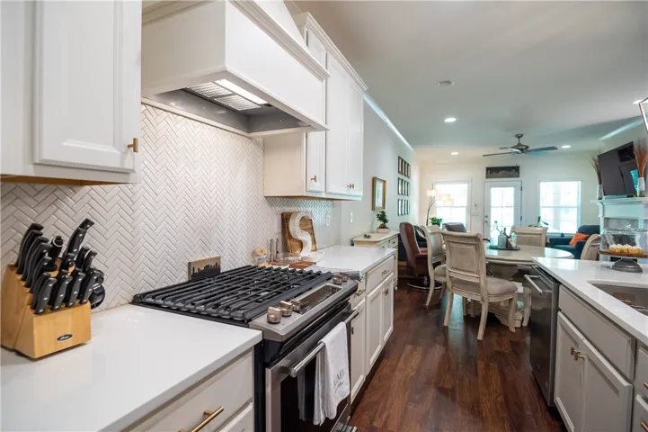 Step inside to a bright and modern living space with luxury vinyl plank flooring throughout, quartz countertops, upgraded appliances, a custom kitchen hood, and an oversized island that is ideal for hosting or everyday living. The open layout flows seamlessly to a covered back porch that overlooks peaceful green space, giving this Auburn home for sale the relaxed lifestyle today’s buyers want.