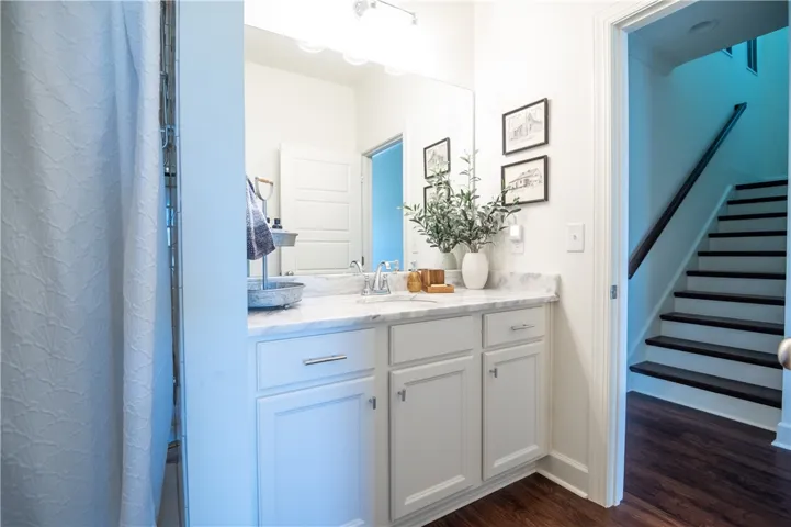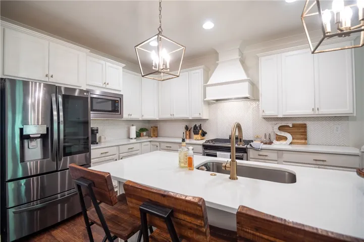 This stunning end-unit townhome combines modern comfort, thoughtful upgrades, and proven income potential. Inside, you’ll find luxury vinyl plank flooring throughout all living areas and bedrooms, upgraded appliances, quartz countertops, a custom kitchen hood, and an oversized island—perfect for entertaining or everyday living. The open floor plan allows for flexible dining and living arrangements, while the covered rear porch offers a peaceful retreat overlooking green space.