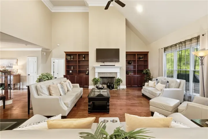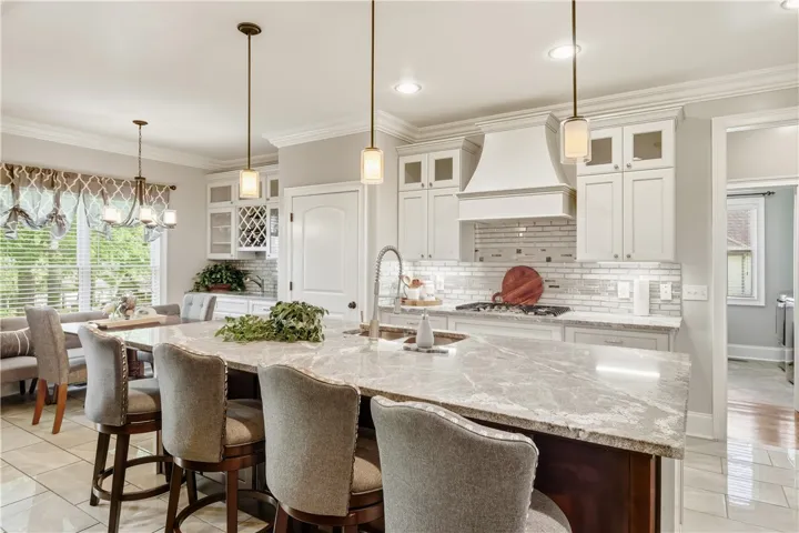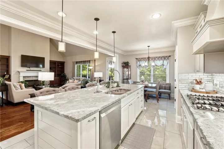 The spacious open-concept living area, featuring vaulted ceilings and lovely built-in cabinetry flanking the fireplace, flows seamlessly into the recently renovated kitchen and dining spaces, including a gorgeous formal dining room (with room for the biggest of tables!) off the main entry with an ideal wet/wine (or coffee) bar area for everyday living and entertaining in the breakfast nook of the kitchen.