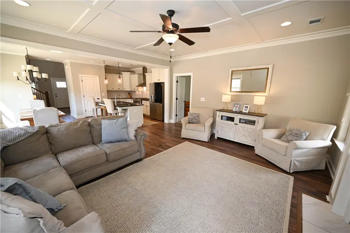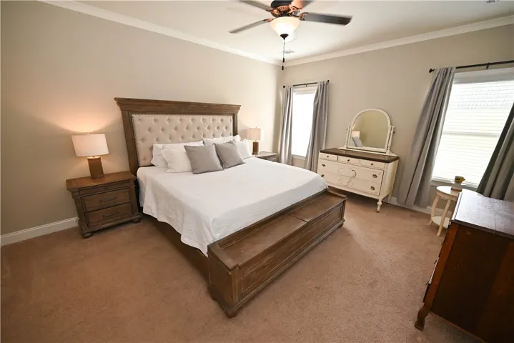 AU Club home with excellent space inside & out! Cute & welcoming covered front porch opens to a 2-story foyer with accent windows offering tons of natural lighting! Convenient half bath is tucked away off the foyer. Modern kitchen complete with granite countertops, a large center island with undermount sink, tiled backsplash with under cabinet lighting, stainless steel appliances including a gas stove & two roomy pantries. Off the kitchen is a dining area surrounded by windows large enough to seat 8 people! Kitchen also opens to the living room which features a coffered ceiling with recessed lighting & gas log fireplace surrounded by a floor to ceiling trim detail. Spacious Primary Bedroom is on the main level with a large walk-in closet that connects to the laundry room. The primary bathroom boasts a tiled step in shower, soaking tub, double vanities & private water closet. The 2nd level includes a loft area, 4 bedrooms & 2 full bathrooms! The home features both a two car garage & an additional 3rd car bay creating tons of storage as well as a fun courtyard perfect for games & big wheels! The covered back patio off of the living room overlooks the fenced private back yard. Neighborhood HOA dues of $425/year include the use of the AU Club pools without the full AU Club membership! Around the corner from the Auburn Tennis Center, Richland Elementary, Creekside & less than 2 miles from Auburn University! Freshly painted interior. Welcome home!